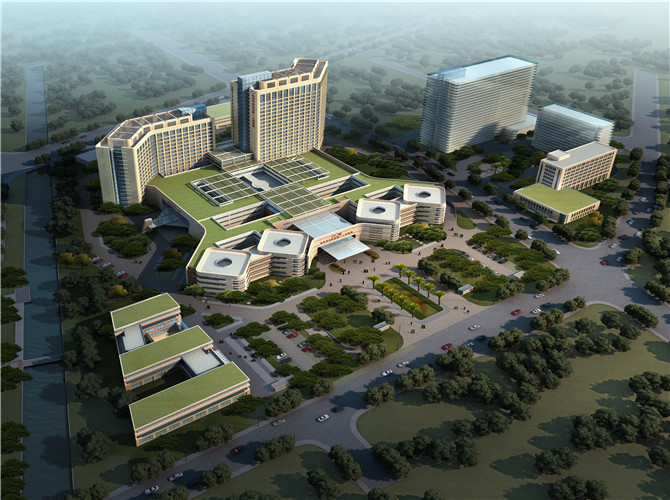 新院選址于迎賓大道旁的鐵路苗圃地塊,規劃征地120畝,醫療用房建筑面積85000平方米,設床位800張,以病房樓為主建筑,貫通門急診樓,醫技樓,行政科研教學樓,干部保健樓,傳染病綜合樓及其它輔助用房,形成結構合理的現代化建筑群,將滿足年門急診70萬人次,年住院3萬人次的醫療需要。