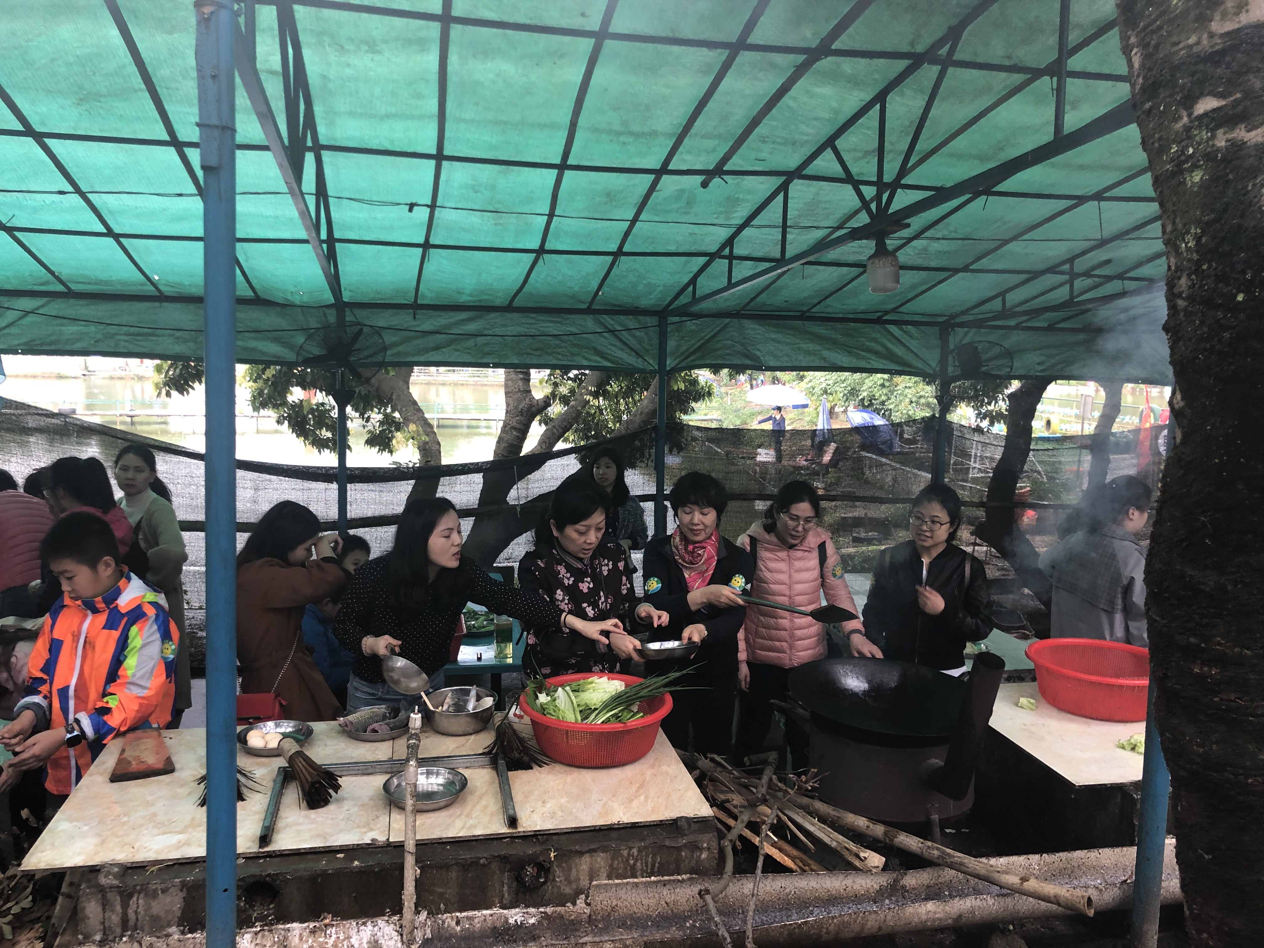 ? ? ? ?中午進行了快樂生活田園野炊烹飪大體驗,雖沒有“烹羊宰牛且為樂,會須一飲三百杯”的豪情與奔放,但是我們也是體驗了親自抓魚、宰殺、生火、烹飪的樂趣,大家圍坐一堂,品嘗由各個同事間的烹飪高手做出的美食。