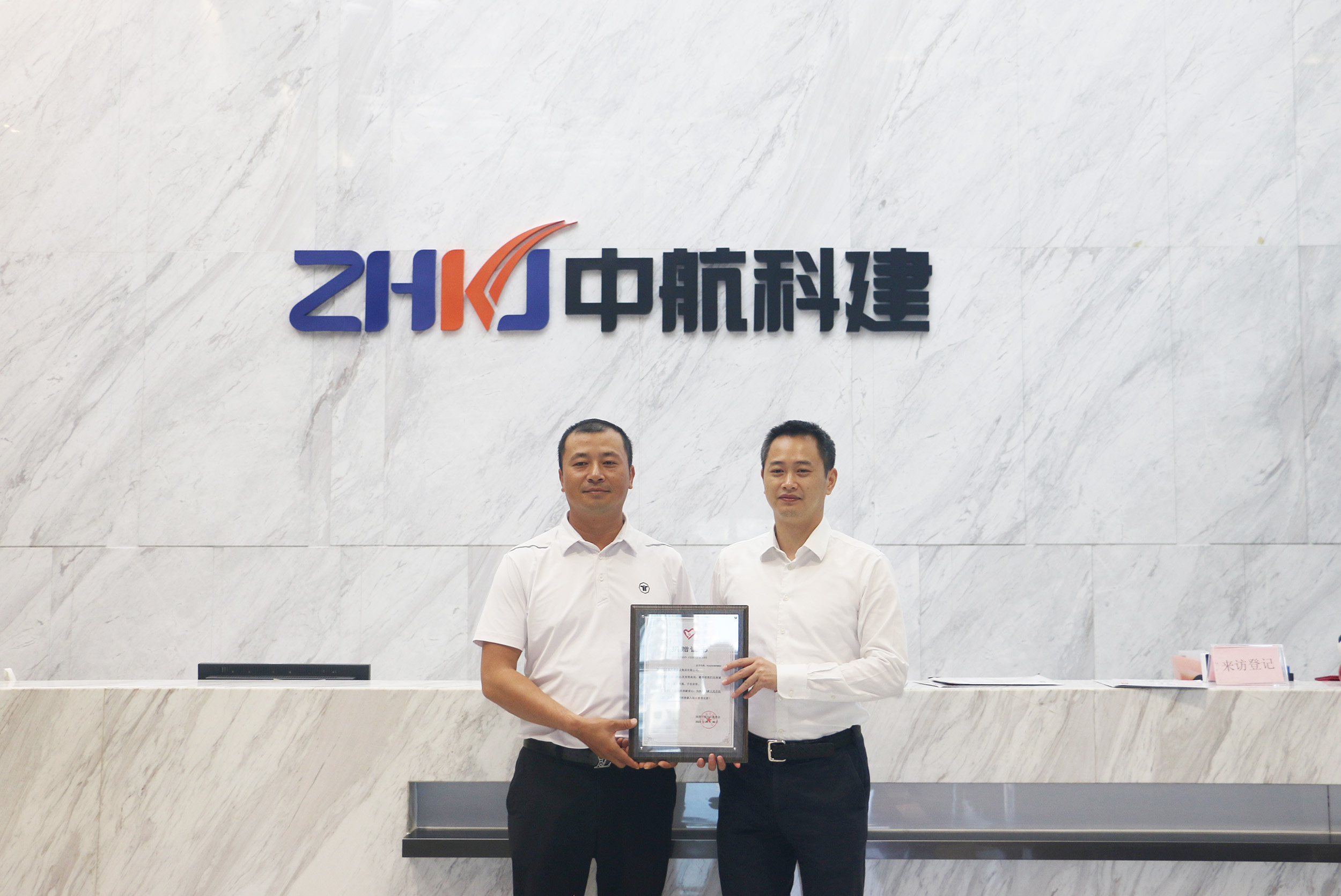 福保街道辦事處副主任鄭騰向中航科建聯席總裁石宣亮頒發榮譽證書