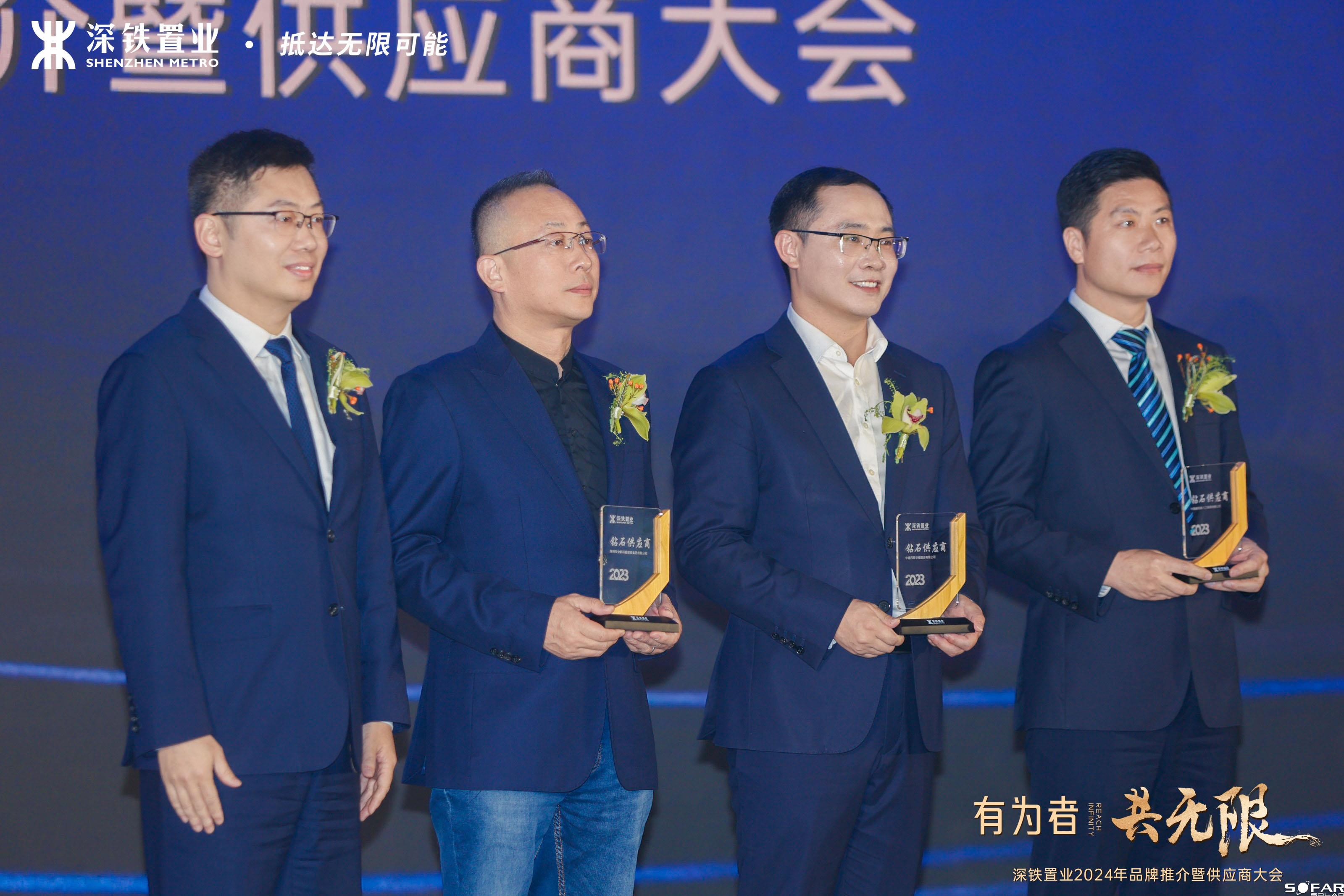 ? 3月22日,深鐵置業在深鐵春泉文化藝術中心召開“有為者 共無限”2024年品牌推介暨供應商大會,旨在進一步促進與軌道交通產業鏈優秀供應商的交流,探索“軌道+”產業鏈的合作共贏之路。中航科建在上百家供應商中脫穎而出,獲深鐵置業“2023年度鉆石供應商”最高榮譽稱號,也是獲獎的唯一裝飾企業。