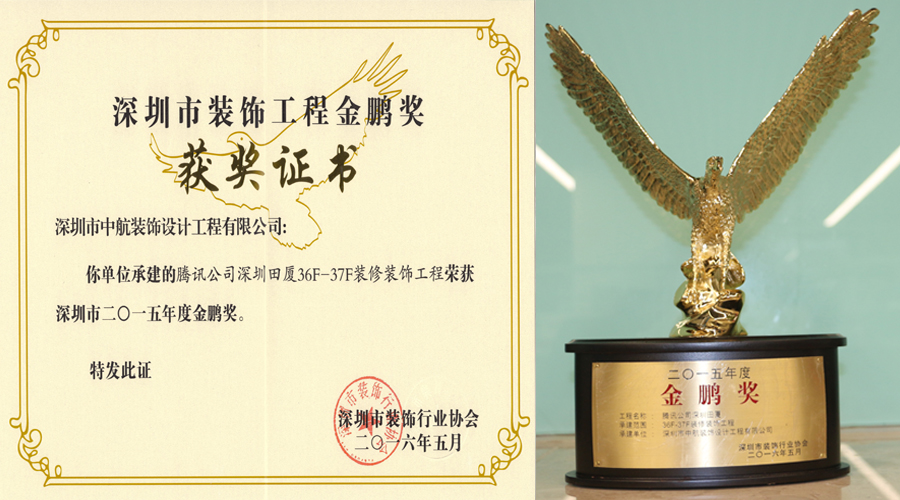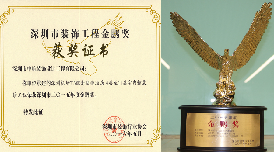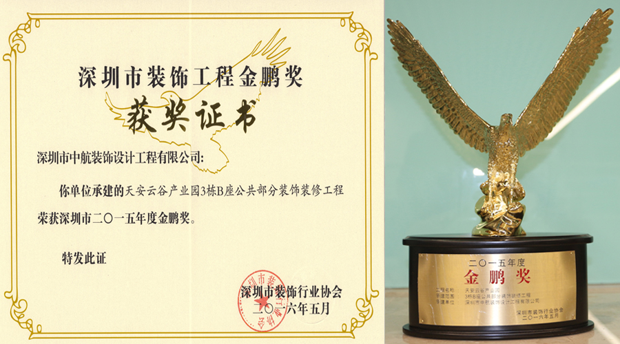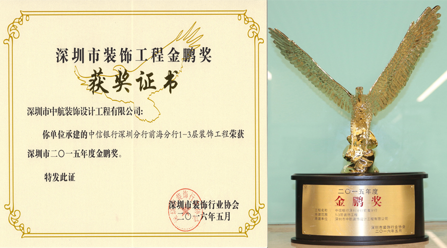 中航裝飾四項工程榮獲2015年度深圳市裝飾工程金鵬獎
